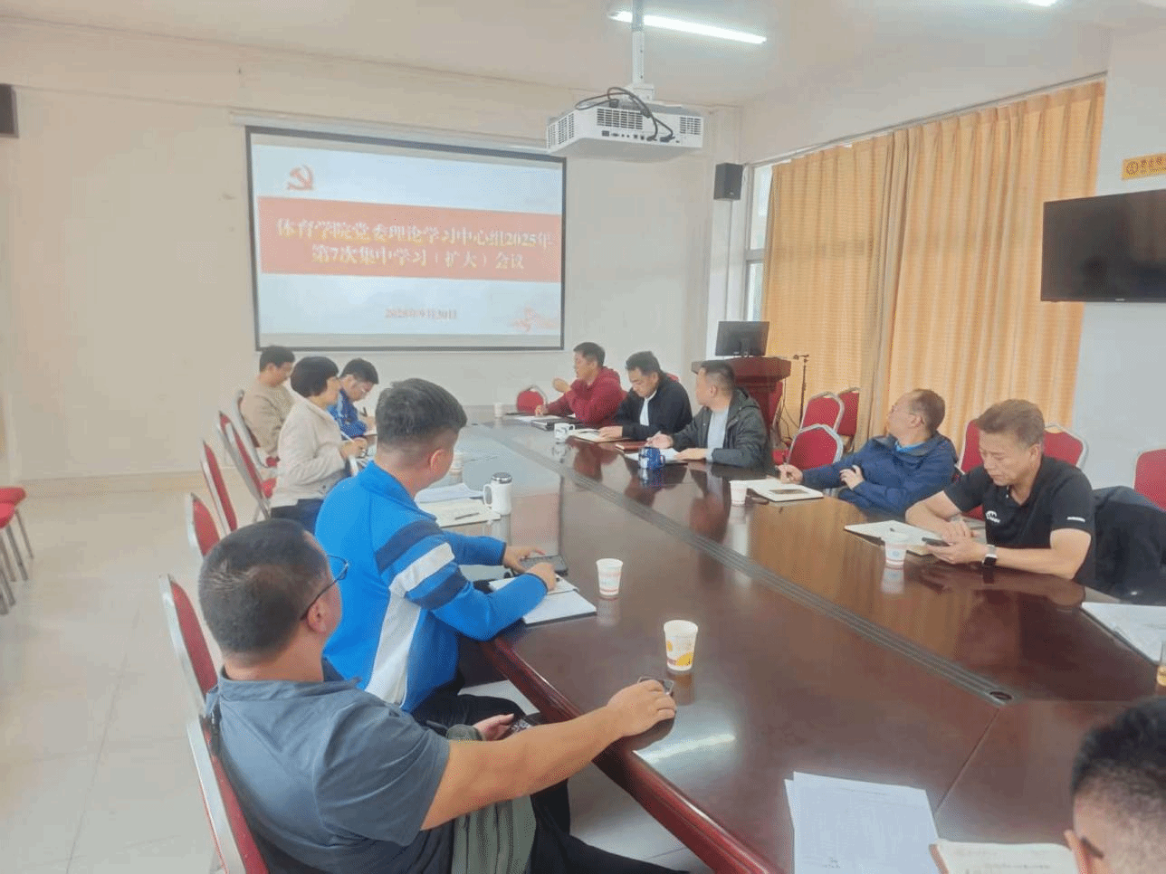 为深入学习贯彻习近平总书记在纪念中国人民抗日战争暨世界反法西斯战争胜利 80 周年大会上的重要讲话精神,将伟大抗战精神融入学院育人实践与高质量发展进程,9 月 30 日下午,体育学院党委理论学习中心组在学院 401 会议室召开 2025 年第七次集体(扩大)学习会。学院党委委员、非党员领导班子成员、各科室负责人及党支部书记参加学习,会议由学院党委书记李杰庆主持。