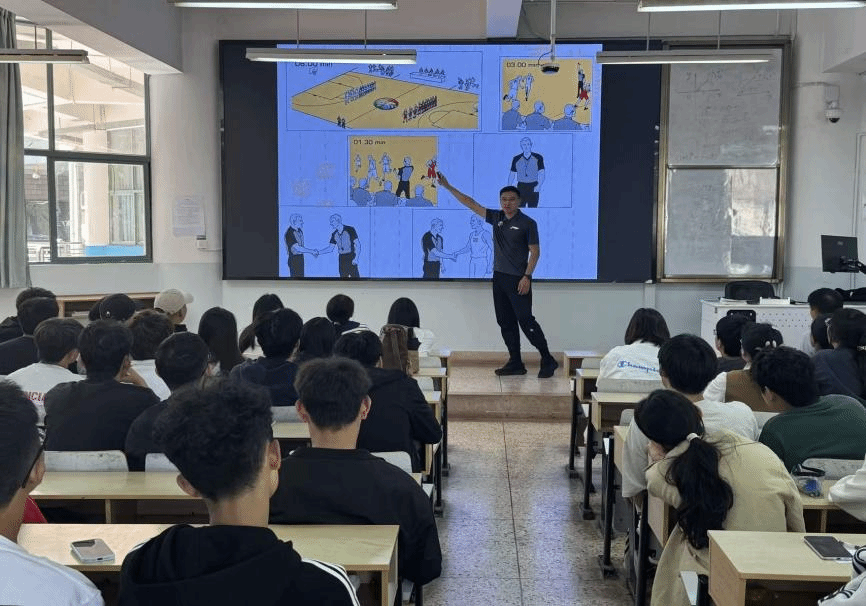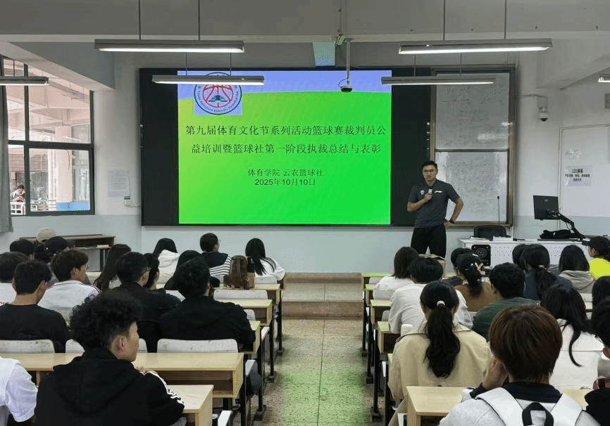 2025年10月10日,体育学院举办篮球赛裁判员公益培训。此次培训由云农篮球社、云农体育竞赛服务轻骑兵、各学院学生会相关负责人等共计100余人参加,由篮球社指导教师、国家级篮球裁判员范继畅老师担任主讲。
