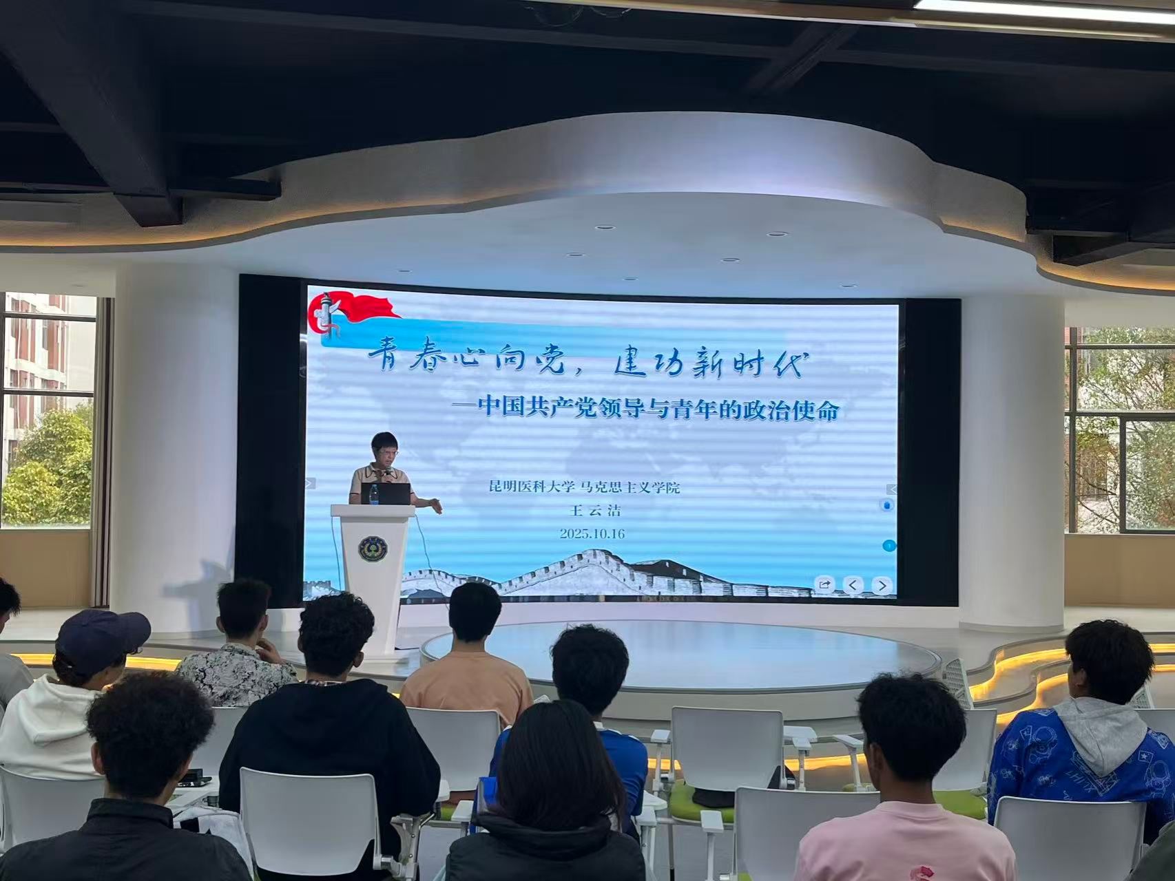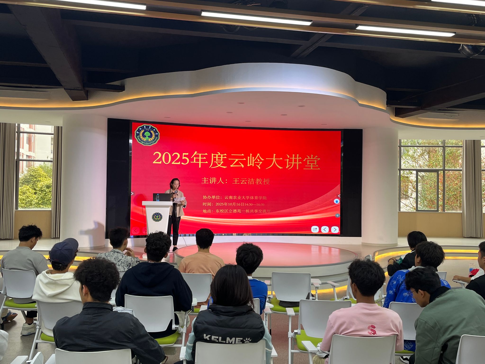 2025年10月16日14:30——16:30由云南省社会科学联合会主办,云南农业大学体育学院与科学技术处共同承办的思想政治教育活动“云岭大讲堂”在学校东校区共享交流厅举行。此次大讲堂有幸邀请到昆明医科大学马克思主义学院王云洁教授作为主讲嘉宾,以《青春心向党 建功新时代——中国共产党领导与青年的政治使命》为题,为体育学院师生带来一场精彩的思想政治专题讲座。