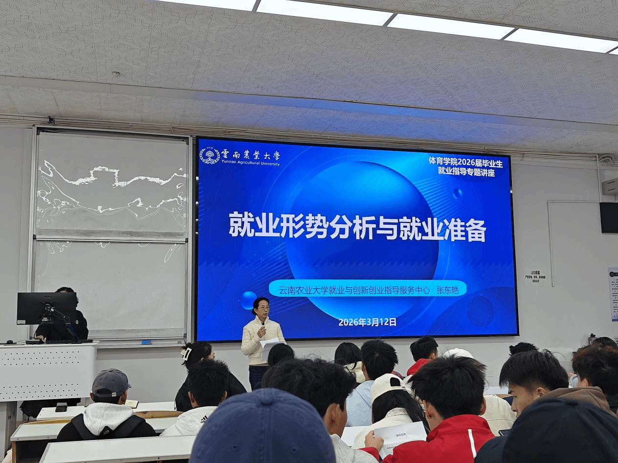 为深入贯彻落实学校关于毕业生就业创业工作的决策部署,进一步引导毕业生认清就业形势、转变就业观念、提升求职竞争力,2026年3月12日中午,体育学院特邀学校就业与创新创业指导服务中心主任张东艳老师,作“就业形势分析与就业准备”专题就业指导讲座,讲座在厚德楼305教室举行,学院170余名学生到场聆听。